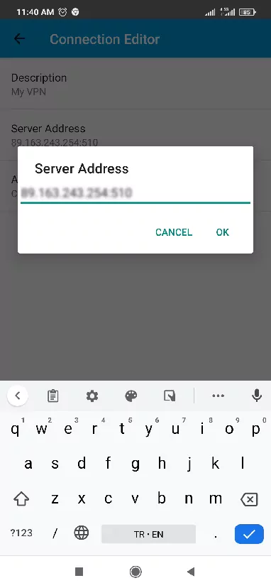 - Tap Server Address and Enter the IP you received via email, then tap OK. Now Tap Done.