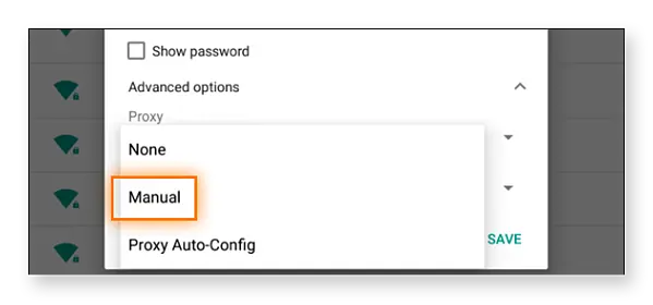 - Tap Manual to change your proxy's settings. Enter your hostname and proxy port.